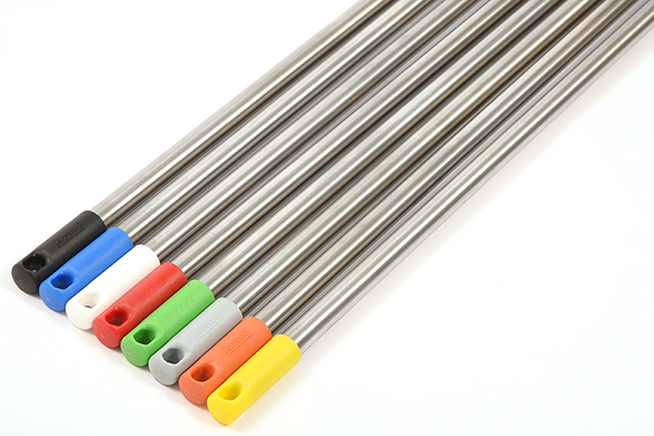 Cabo de Acero Inoxidable reforzado 22mm.diam. Para usar con secadores de piso, mopas de lavado, cepillos sanitarios. Con rosca standard cónica o con rosca americana cilindrica.
